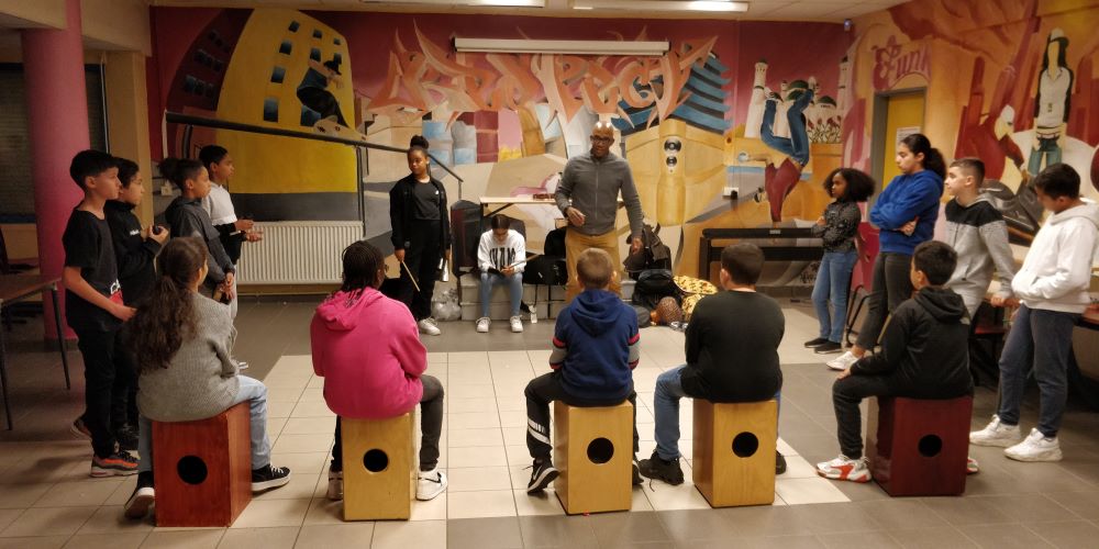 Des masterclass de percussions cubaines sont également organisées, comme ici à Gennevilliers, Pau ou au Conservatoire à Rayonnement Régional de Paris. Les élèves approfondissent notamment le travail sur le rythme et les techniques d’improvisation.